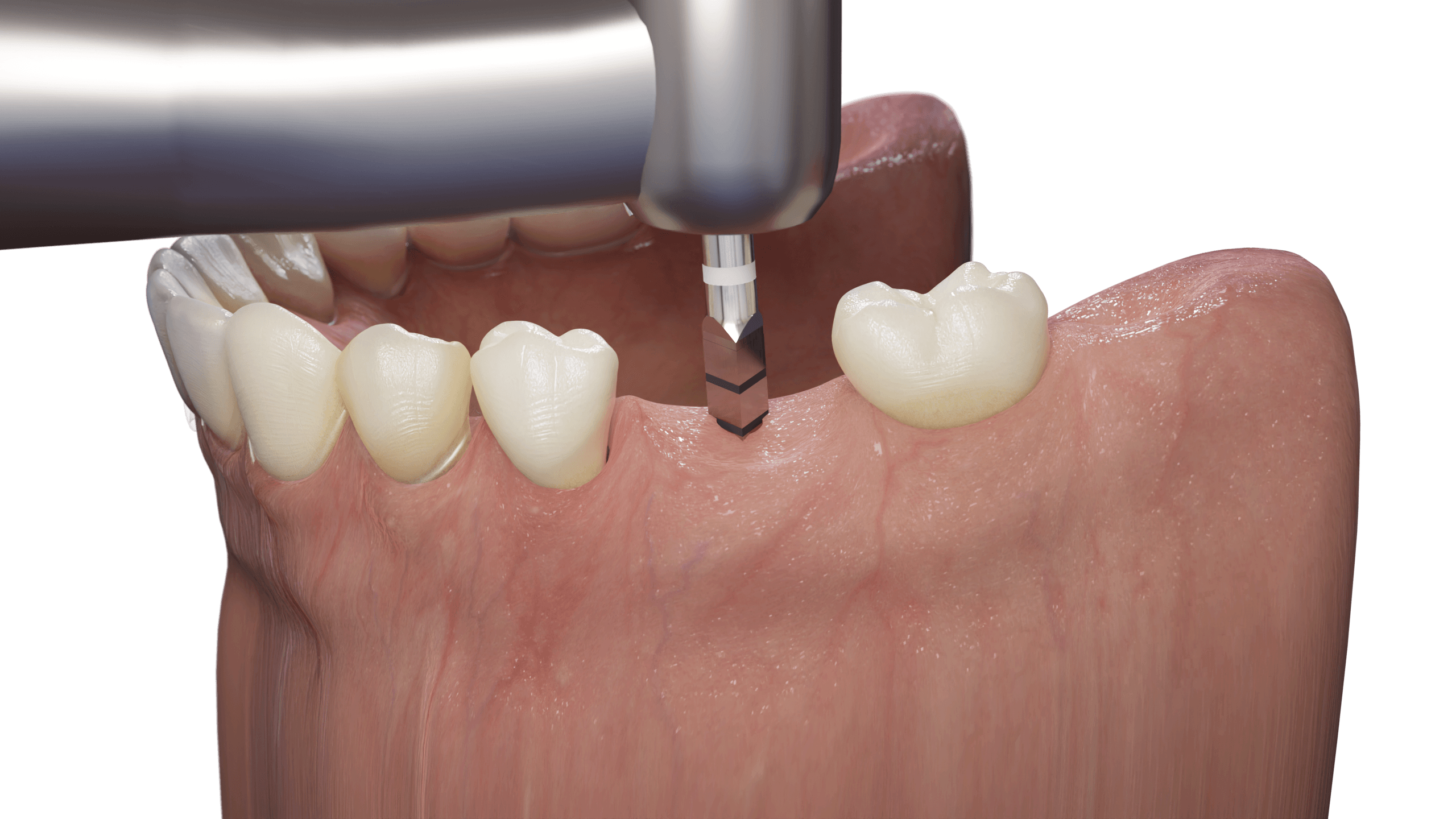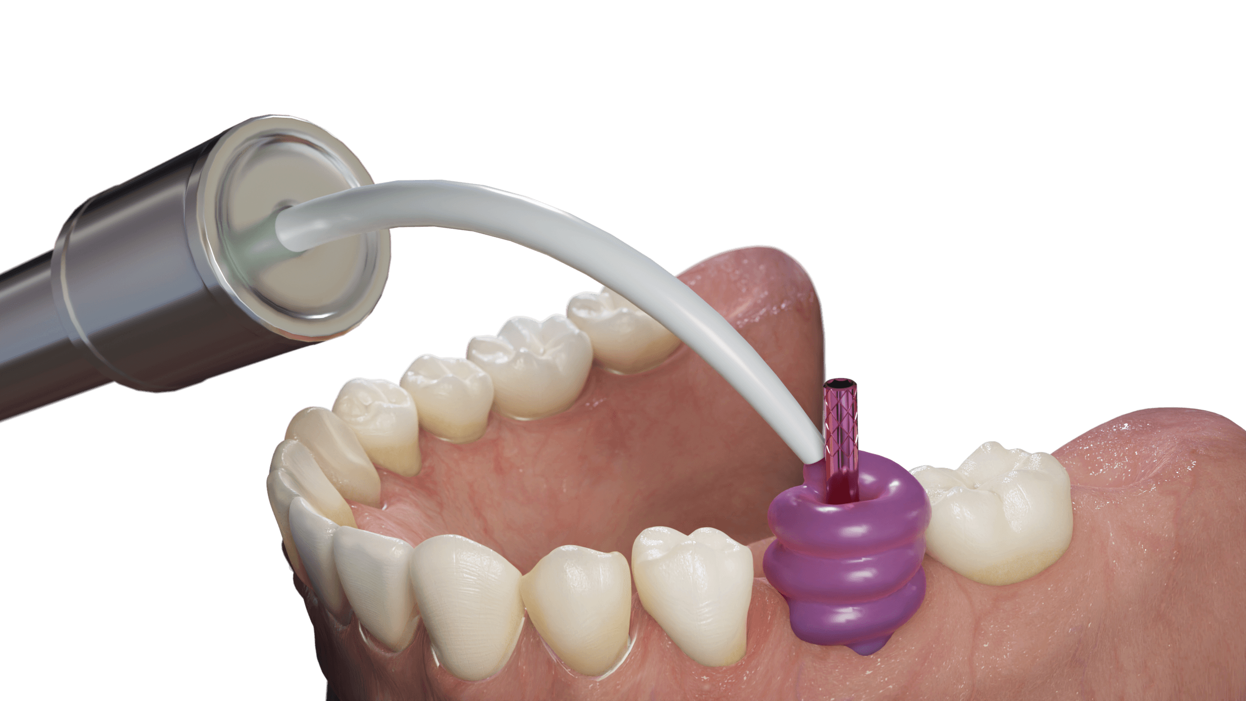 Durch modernste Technik werden Implantate ohne chirurgischen Eingriff und Nähte eingeführt, um den Heilungsprozess zu beschleunigen.